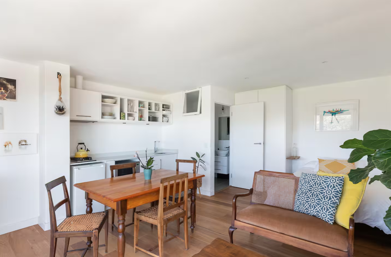 Enjoy your private apartment, outdoor living space, including a spacious deck with breathtaking beach views. Just a 5-minute walk to the sandy shores, this retreat offers two independent studio rooms, each with their own entrances. Whether you're seeking a peaceful escape or beachside adventure, this apartment provides comfort, tranquility and stunning scenery.